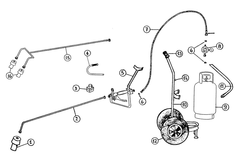 Il peso complessivo dell’attrezzatura con tubo da metri 10 varia da 14,0 a 15,0 Kg in funzione del numero di bruciatori utilizzati.